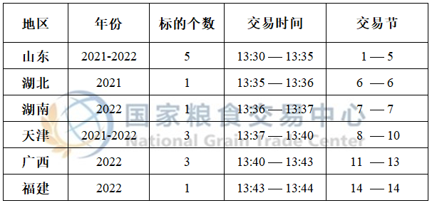 进口大豆于13:30开市交易,请提前登录“进口大豆竞价销售交易”交易专场并关注标的,最新预估竞价交易时间如下:
